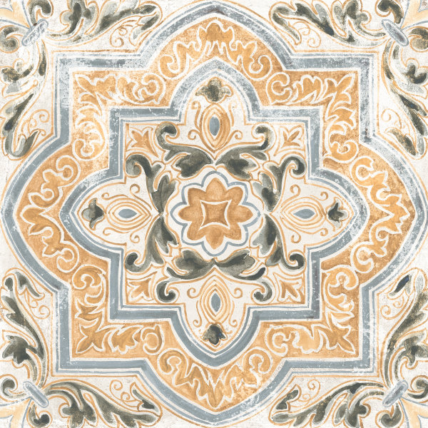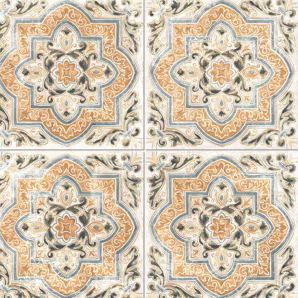 Patterned Antislip Outdoor Porcelain Tile, Artisan our decorative Blue, Cream & Orange 61×61cm Outdoor Italian Porcelain Collection captures the charm of time-worn European courtyards, blending intricate pattern with a softly aged, vintage aesthetic.