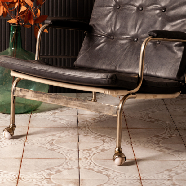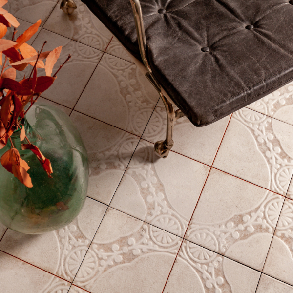 Enhanced with Layer Tech, each tile features two finishes on the same surface, creating a unique play of texture and sheen. Advanced digital-printing technology adds fine grits to highlight the embossed areas, giving the tile beautiful depth and a soft, polished glow. The result is a timeless vintage aesthetic with refined, artisan character.