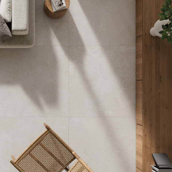 White Shaped Finish Porcelain Tile, clean, bright, and effortlessly timeless, the White shade from our Stellar Collection brings a sense of calm sophistication to any space. Inspired by the quiet beauty of the night sky, its surface is gently speckled with fine white particles, creating soft movement and a luminous, refined finish.