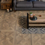 Available in two refined shades, Oak and Chestnut, Weald is produced in a striking 600 × 600mm geometric format, designed to replicate the elegance of parquet with a contemporary edge. The structured pattern creates visual movement and depth, making it ideal for both statement floors and cohesive, open-plan spaces.